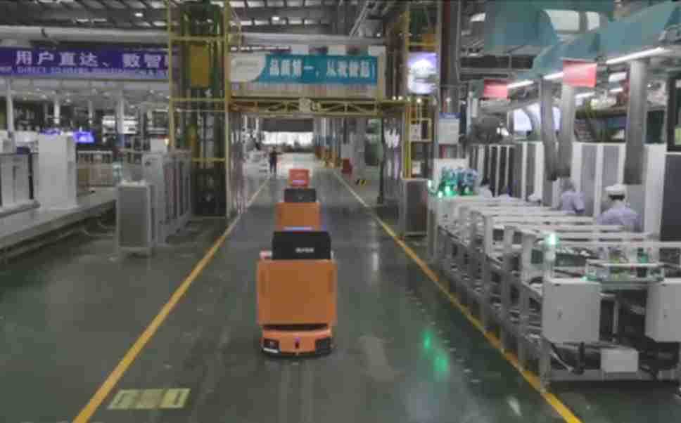 为车载冰箱物流配送打造的智能解决方案,,,包含产中物流通过潜伏举升AMR搬运至线边,,,,产后成品物流智能仓储,,,流程包含产中物流智能齐套入库,,,线边安灯叫料AMR智能配送至线边,,,成品入库、、、出库,,通过无人堆高车机器人,,,,智能仓储管理替代人工作业管理,,,,实现更高存储、、、更高效率、、更具柔性化的解决方案。。